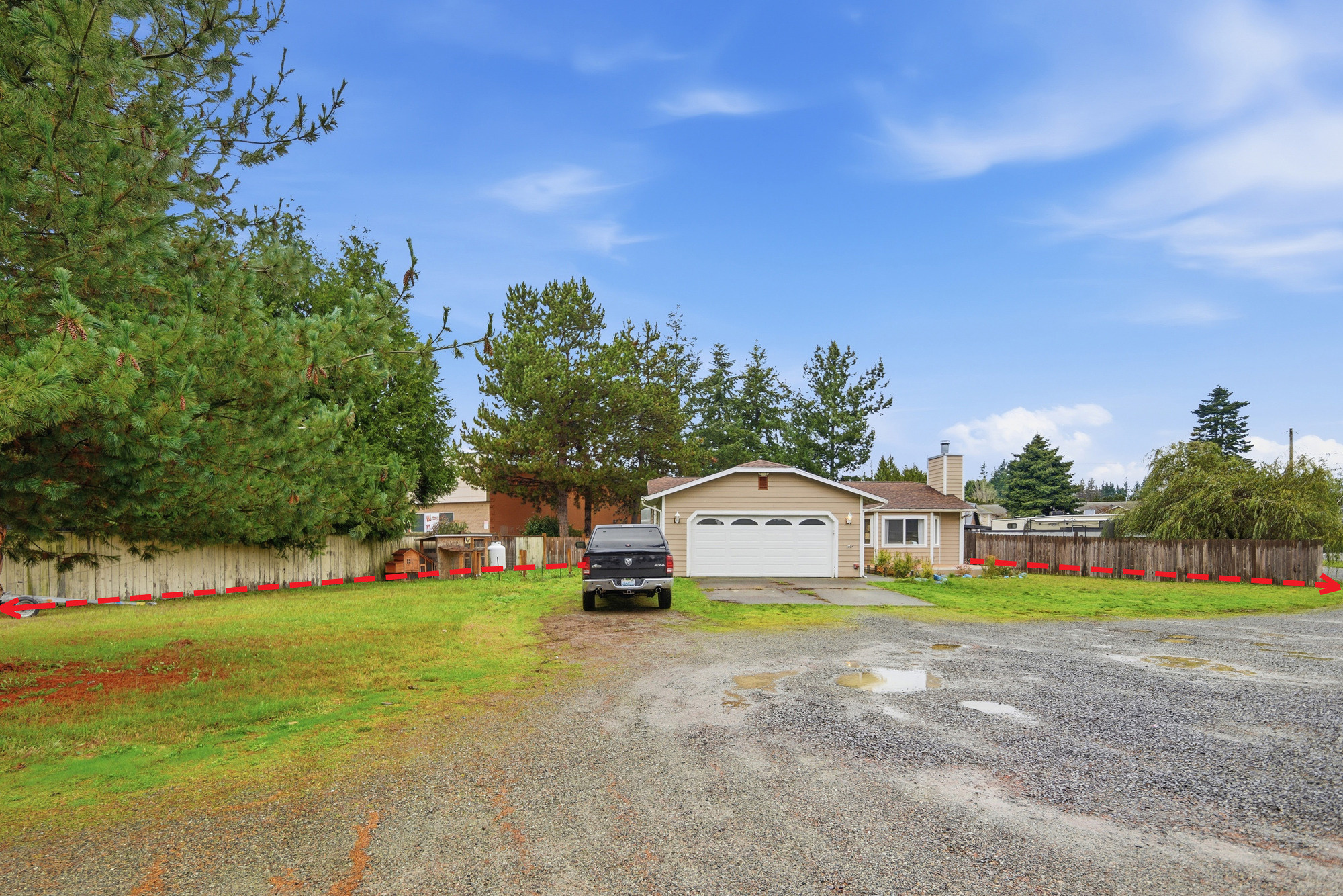 Red arrows show the sprawling size of the .40-acre lot